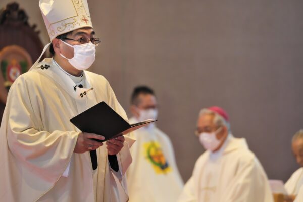 4月4日(火)10時30分から浦上教会で聖香油ミサが行われ、中村倫明大司教の主司式、髙見三明名誉大司教と80人を超える司祭団の共同司式のもと、集まった約200人の信者らが祈りをささげた。