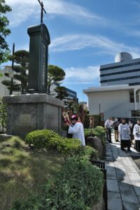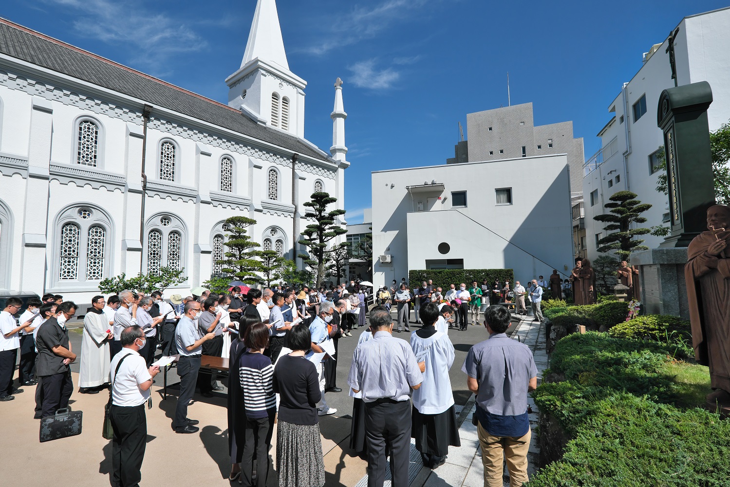14時から教会敷地にある同殉教者記念庭園で中村倫明大司教が記念碑に献花・献香をし、皆で祈りをささげ、その後聖堂内に移動して「聖トマス西と十五殉教者の玄義によるロザリオの祈り」を唱えた。15時からの殉教記念ミサは、中村大司教が主司式を、22人の司祭団が共同司式を務め、集まった約220人の信徒らとともに皆で祈りをささげた。