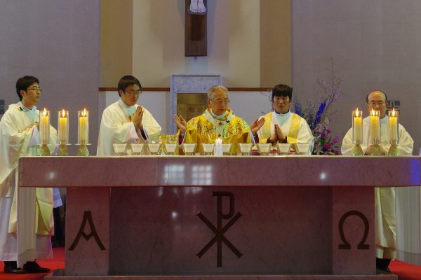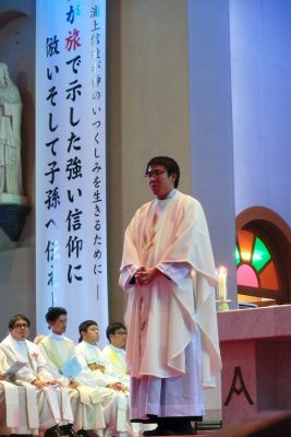 3月19日 司祭叙階式 Blog 2017.03.20 3月19日(日)15時から浦上教会で、髙見三明大司教主司式、80人余りの司祭団の共同司式のもと司祭叙階式が行われ、多くの修道者・信徒らが感謝の祈りをささげた。 叙階されたのは、土井ノ浦教会出身の下原和希新司祭。下原新司祭は司祭団に拍手で迎えられ、参列者一同、新司祭誕生の喜びを分かち合った。