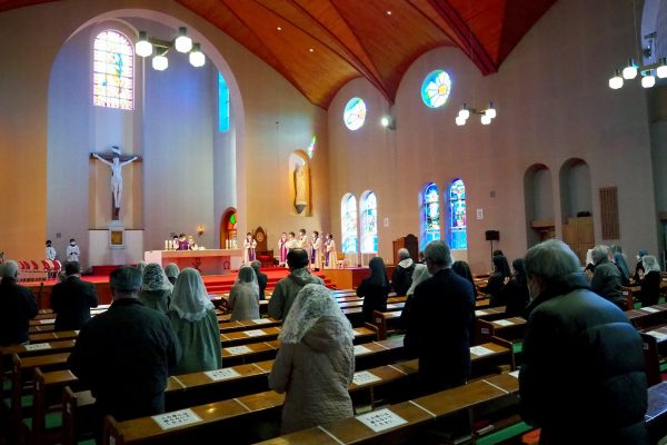 ※浦上教会でのこの集いは、数日前の3月17日に中村大司教が「それぞれの場で、あるいは集まって、ロザリオの祈りをささげましょう」と各小教区を通して呼び掛けたもので、ミサは教区を代表して司教座聖堂で行われました。