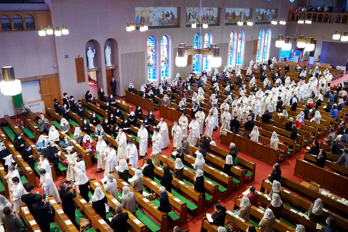 中村倫明大司教はミサの終わりに、ウクライナの人々のためにこれまでいくつかのグループが祈りの集いをもっていること、これからも予定されていることについて触れ、今後も平和を願い、続けて祈っていきましょうと呼び掛けた。