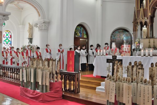 新型コロナウイルスの影響下、屋内(中町教会)での参加には制限が設けられたが、記念祭の様子はライブ配信された。中村大司教の司式、教区内外から集まった方々の参加のもと、皆で殉教者たちの証しを思い、感謝と祈りの時をともに過ごした。
