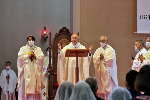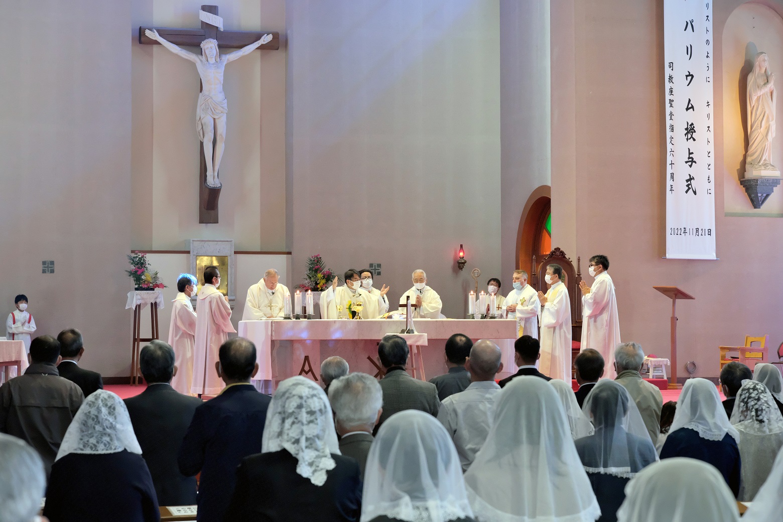 王であるキリストの祭日、11月20日(日)9時30分から行われた浦上教会でのミサの中で、駐日ローマ教皇庁大使レオ・ボッカルディ大司教から中村倫明大司教へ「パリウム」が授与された。