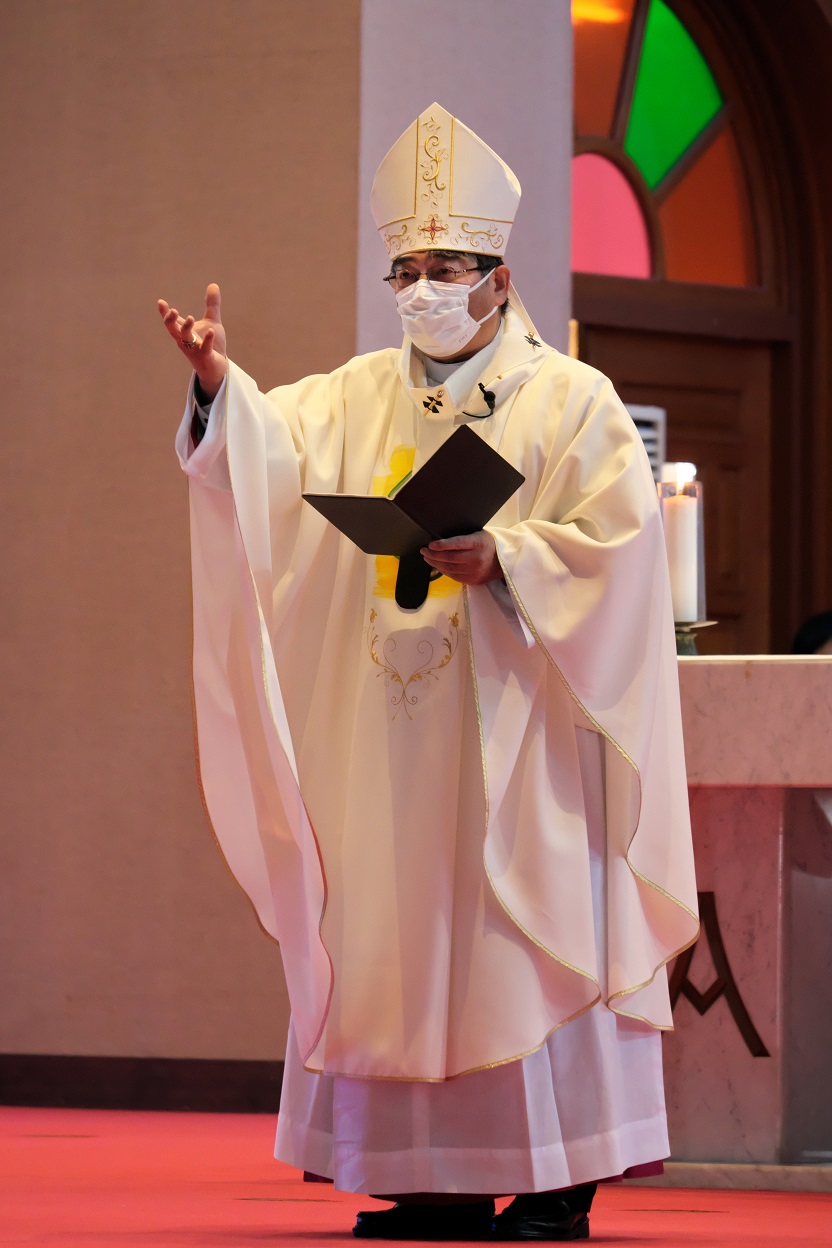 またこの長崎大司教区と長崎教会管区のすべての司牧者たちとすべての信徒の皆さんが、これからも、神さまから愛されていることに自信と誇りをもって、その愛を人々に忠実に伝え、ともに歩んでいく宣教者であることの、さらなる恵みを、わたしたちの王であり、まことの牧者であるイエスさまに、このミサの中で願いましょう。