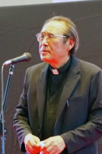 (2枚目)続いて長崎南山学園理事長・校長の西 経一師があいさつし、さまざまな方面での多大な協力に謝意を表すとともに、開演にあたり「緊張している生徒たちのために、今一度頑張れの拍手をお願いしたいと思います」と語った。