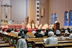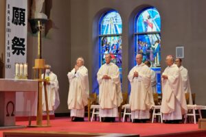 長崎原爆の日の8月9日(水)、18時からの長崎大司教区主催平和祈願祭(平和祈願ミサとたいまつ行列)は、台風6号の接近に伴い中止となった。新型コロナの影響で教区主催としての平和祈願祭がここ数年見送られ、今年は4年ぶりに実施できるとしていただけに各方面から中止を惜しむ声が聞かれた。