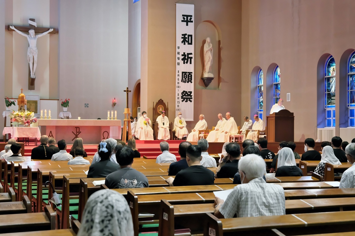 平和祈願祭は中止となったが、原爆投下時刻11時2分に浦上小教区が毎年行っている原爆犠牲者追悼ミサに平和祈願の意向も合わせ、このミサに司教団も参加することとなった。中村倫明大司教が主司式を務め、駐日ローマ教皇庁大使レオ・ボッカルディ大司教、アメリカ合衆国からニューメキニコ州サンタフェ大司教区のジョン・ウェスター大司教とワシントン州シアトル大司教区のポール・エチエン大司教、広島教区の白浜 満司教、髙見三明名誉大司教、13人の司祭団が共同司式をした。