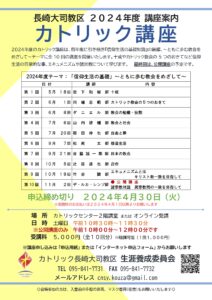 カトリック長崎大司教区 生涯養成委員会主催 2024年度「カトリック講座」【5月18日開講】