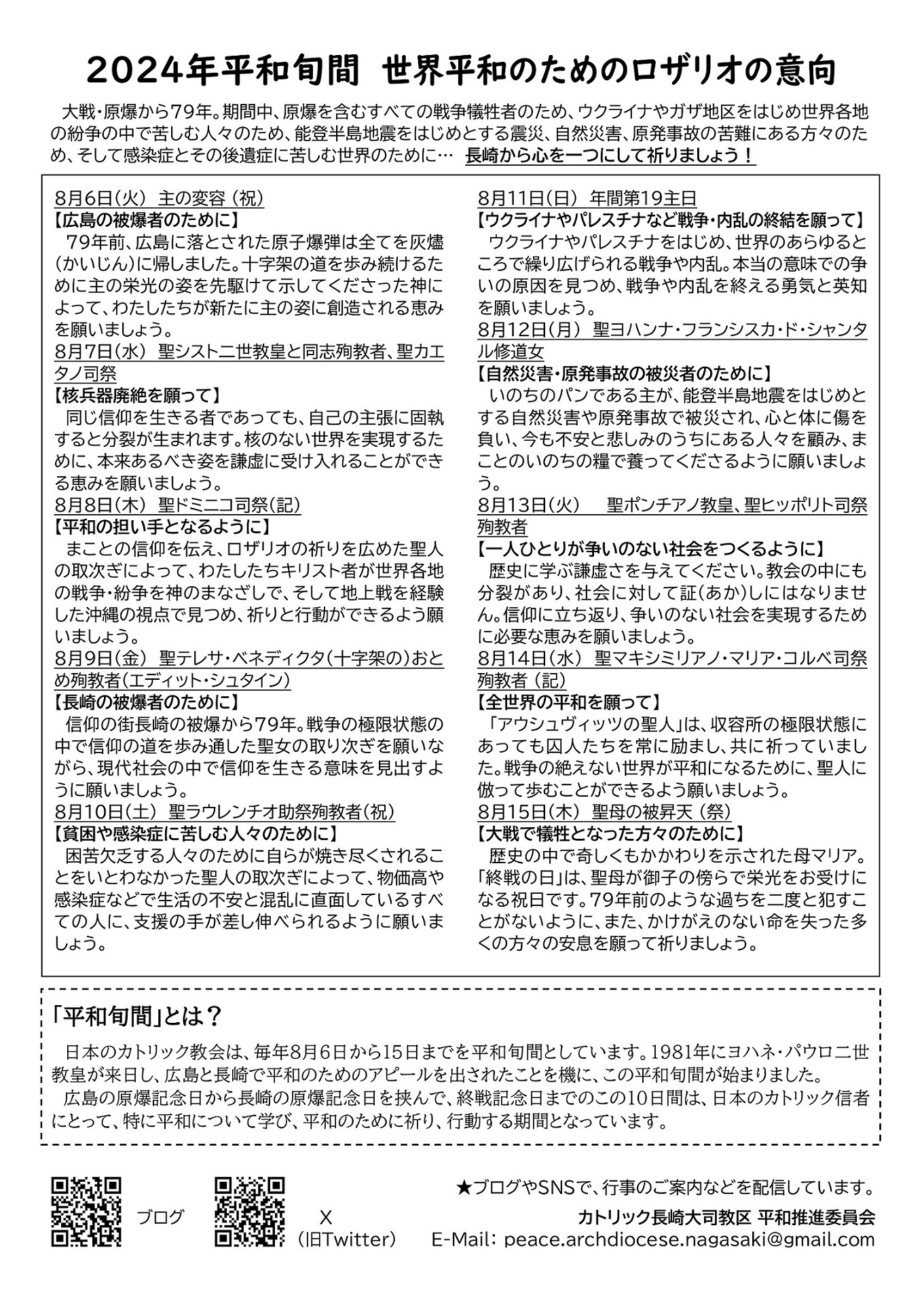 2024年8月4日(日)~17日(土)の期間中、長崎(8/4~13)と東京(8/13~17)で開催されます。このプロジェクトについて知っていただきたく、お知らせいたします。また、参加の応募締め切りは 2024年6月15日(土)です。詳しくはこちらのリンク https://seichi-no-kodomo.org/activity/exchange/peace-bridge/application/2024-detail/ をぜひご覧ください。