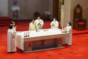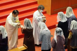 11月1日(金)朝6時から浦上教会でミサが行われた。諸聖人の祭日であり、浦上教会の献堂記念日、また長崎教区の司教座聖堂としての献堂記念日でもあるこの日、中村倫明大司教がミサの主司式を務めた。