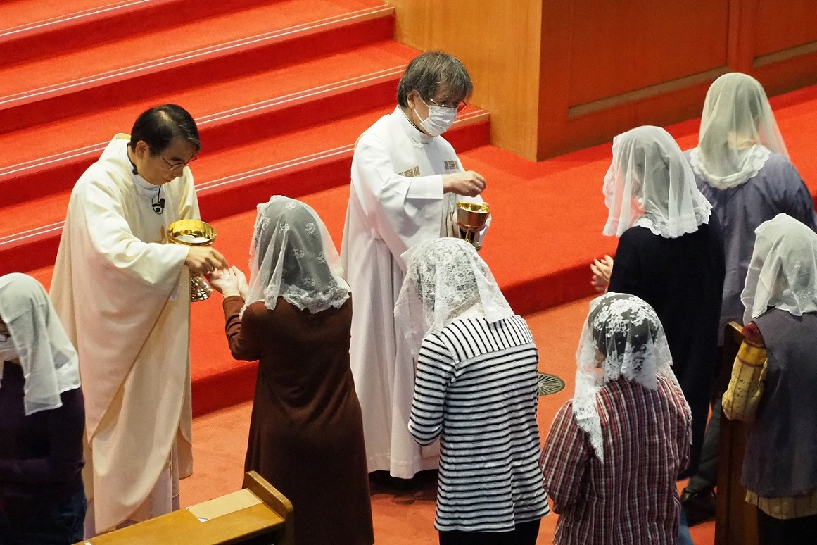 大司教は説教の初めに「本日はいろいろなお祝いが重なっています」とし、本来であれば教区の多くの方々と一緒に祈ることができる時間の設定が必要かもしれないが、「今年は浦上教会の通常の朝ミサの中で祝うことといたしました」と語った。