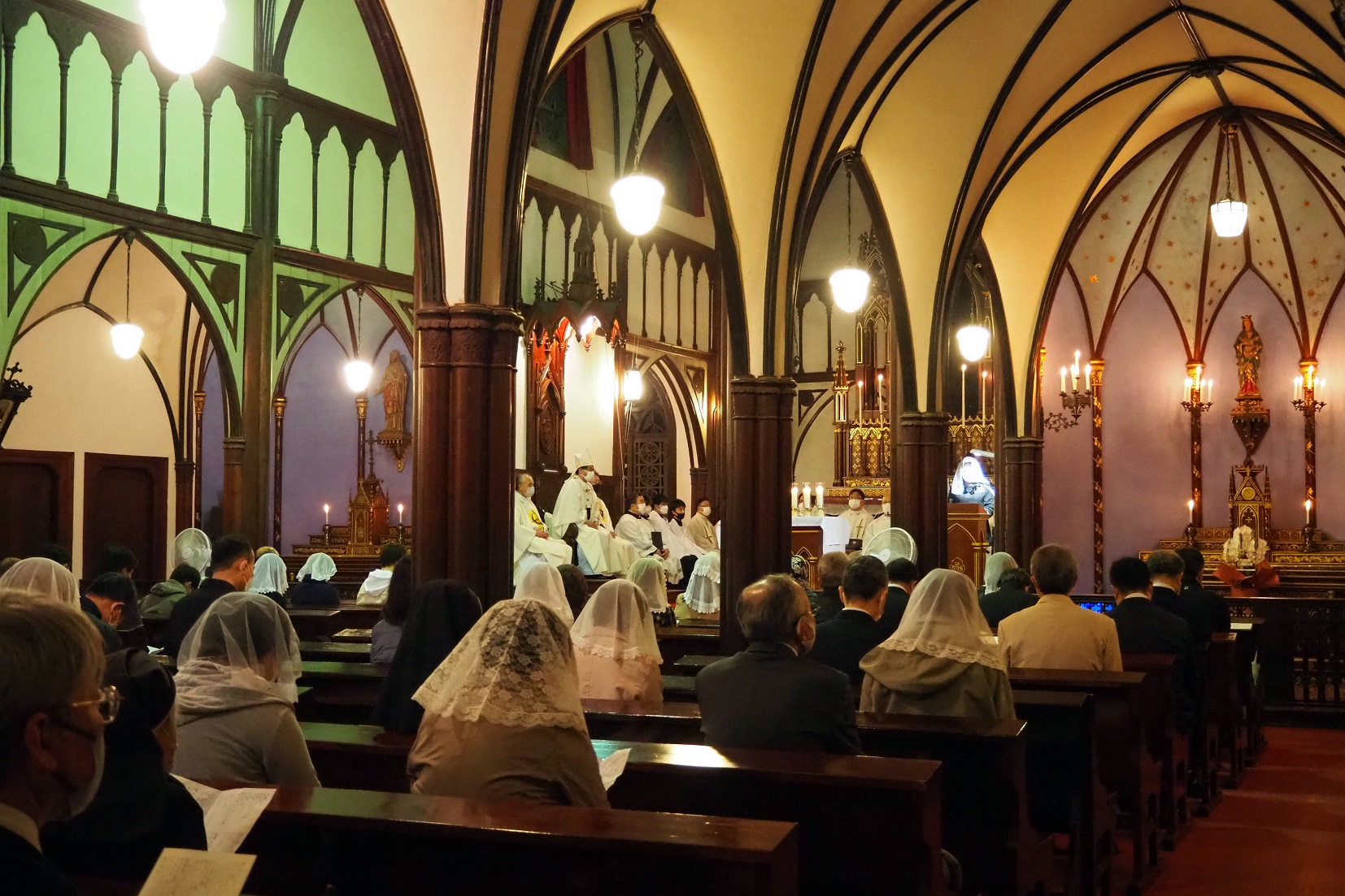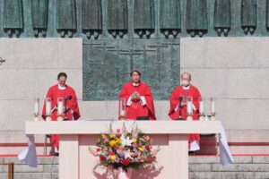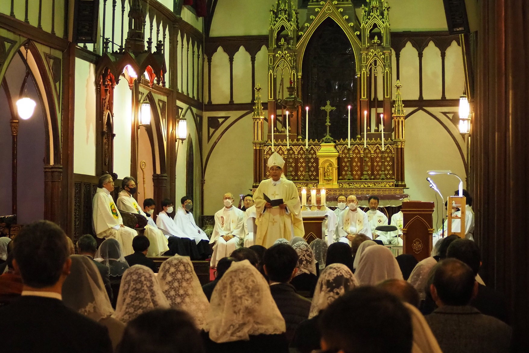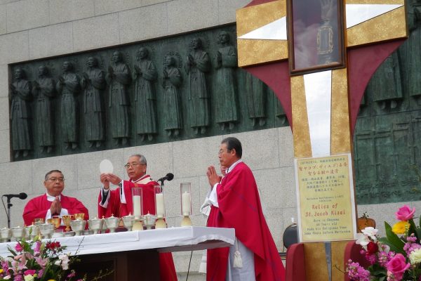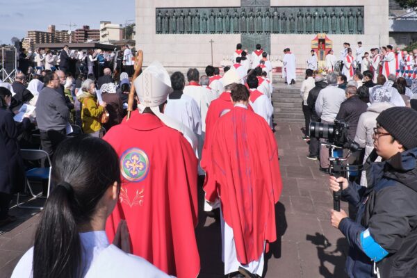 日本の教会は2月5日を、日本二十六聖人殉教者(聖パウロ三木と同志殉教者)の祝日として記念している。この日を前に2月2日(日)、長崎大司教区は14時から西坂公園で殉教記念ミサを行った。中村倫明大司教が主司式を務め、髙見三明名誉大司教と約50人の司祭団が共同司式をし、各地から集まった約1500人が殉教者を思い、祈りをささげた。(写真はミサの様子)