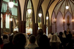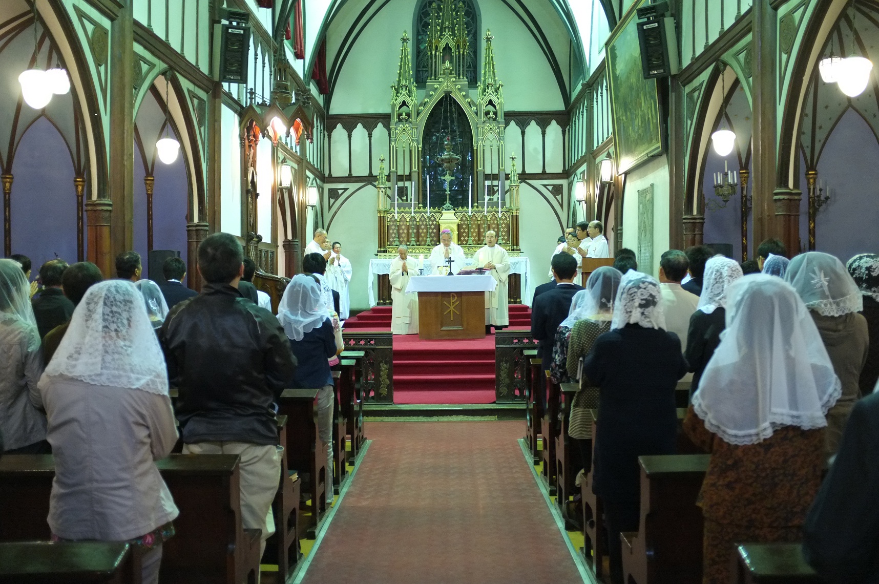 日本の信徒発見の聖母の祝日である3月17日(月)、19時から大浦天主堂で記念ミサが行われた。長崎教区主催、長崎南地区評議会担当。