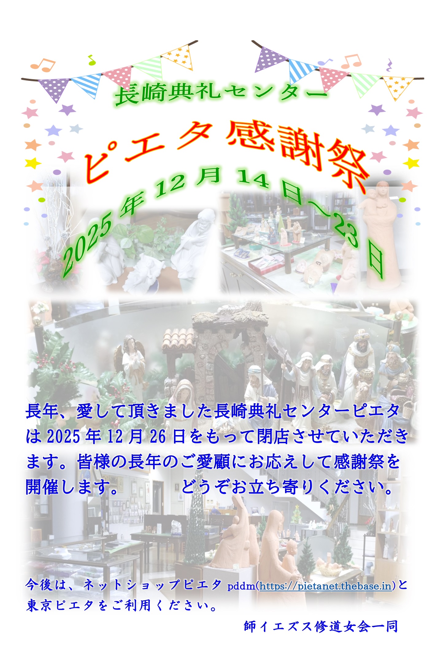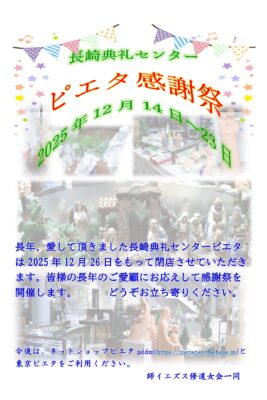 昨日12月14日から長崎典礼センター「ピエタ」の感謝祭が開催中です。ぜひお立ち寄りください。