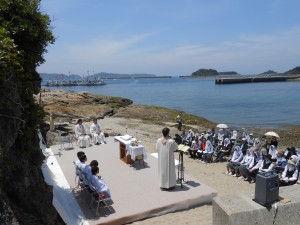 「みつあみの会」とは、長崎に本部を置く3修道女会(お告げのマリア修道会、けがれなき聖母の騎士聖フランシスコ修道女会、長崎純心聖母会)が、自分たちの枠を超えて心を一つにして集い祈る会として立ち上げ、ネーミングしたもの。前回5月3日(土)は、17時45分から信徒を含む約100人が集い、ロザリオの祈りや教会の祈りなどを唱えた。