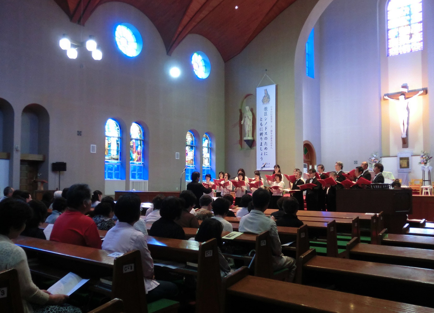 6月15日 『コラール長崎』演奏会 Blog 2014.06.162014.06.17 6月15日、オルガンとコーラスによる賛美のこころと題し、第2回『コラール長崎』演奏会が浦上教会で行われた。(指揮・平本義和、オルガン・松本俊穂、コーラス・コラール長崎、お告げのマリア修道会、独唱・髙田裕和) 演奏会はドイツ語と日本語で歌うミサの聖歌や教会の祈り(三位一体の主日晩の祈り)など約1時間半にわたってあり、最後は「主よ、人の望みの喜びよ(J.S.バッハ)」「いざもろびと(カトリック聖歌21)」で締めくくられた。美しい歌声とハーモニーが聖堂に響き、聴衆を魅了した。