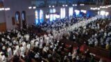 カトリック長崎大司教区は8月9日(土)20時から浦上教会で、髙見三明大司教主司式による平和祈願ミサを行った。今年のテーマは「明日へつなごう平和の願い」。この日予定されていたたいまつ行列は台風の影響のため中止となり、ミサ前の聖堂ではロザリオの祈りが唱えられた。