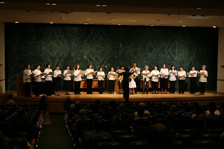 (写真: 合唱の場面は、長崎プロテスタント合唱団の皆さんによる 「長崎の空」の演奏です。)