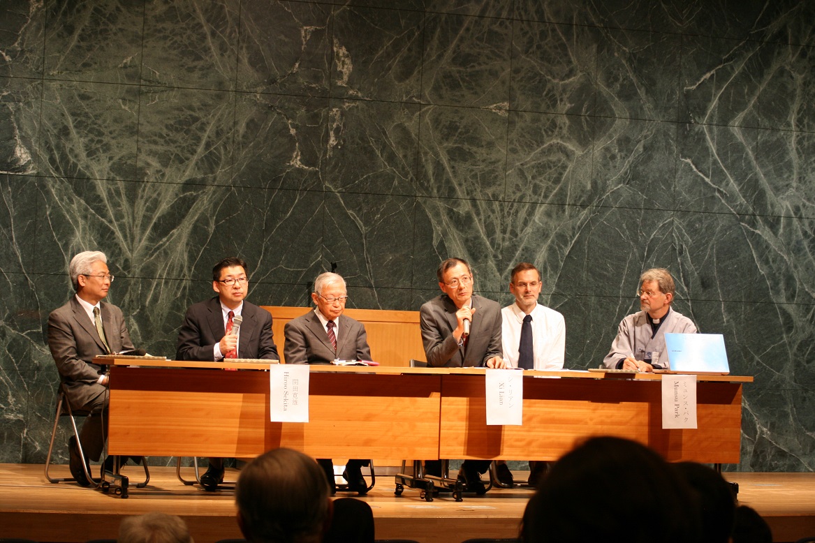 始めに、開催にあたっての協力者として髙見三明大司教があいさつ。講演は、デューク大学神学部部長のリチャード・ヘイズ教授と日本二十六聖人記念館館長のデ・ルカ・レンゾ神父が登壇。パネルディスカッションでは、青山学院大学の関田寛雄名誉教授、デューク大学神学部のシ・リアン教授、韓国・西河大学のムンスー・パク名誉教授(イエズス会司祭)がパネリストを務めた。
