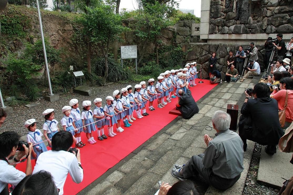 10時、14時、18時からそれぞれ始まった集いの内容は、特別展示の観覧・記録映画の鑑賞・記念のミサ。1日の参加者は延べ550人だった。