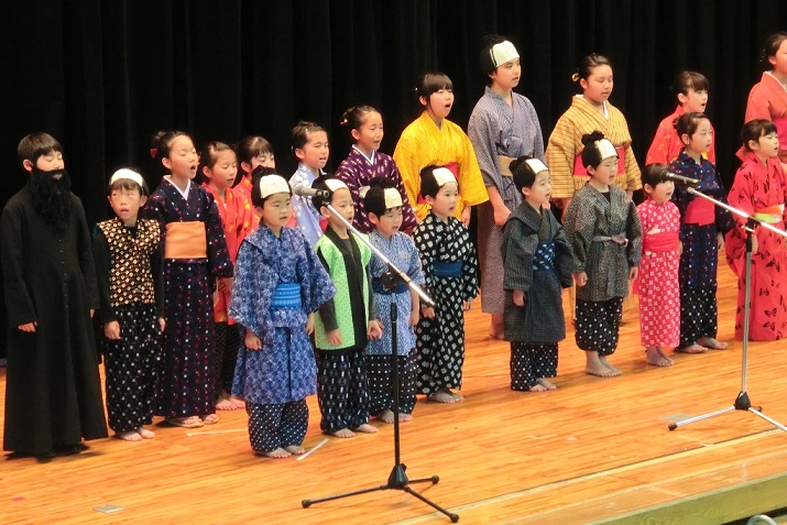 始めに滑石小教区の子どもたち22人がフランシスコ・ザビエル到来から信徒発見にいたるまでの歴史を朗読劇で発表し、記念ミサへと続いた。