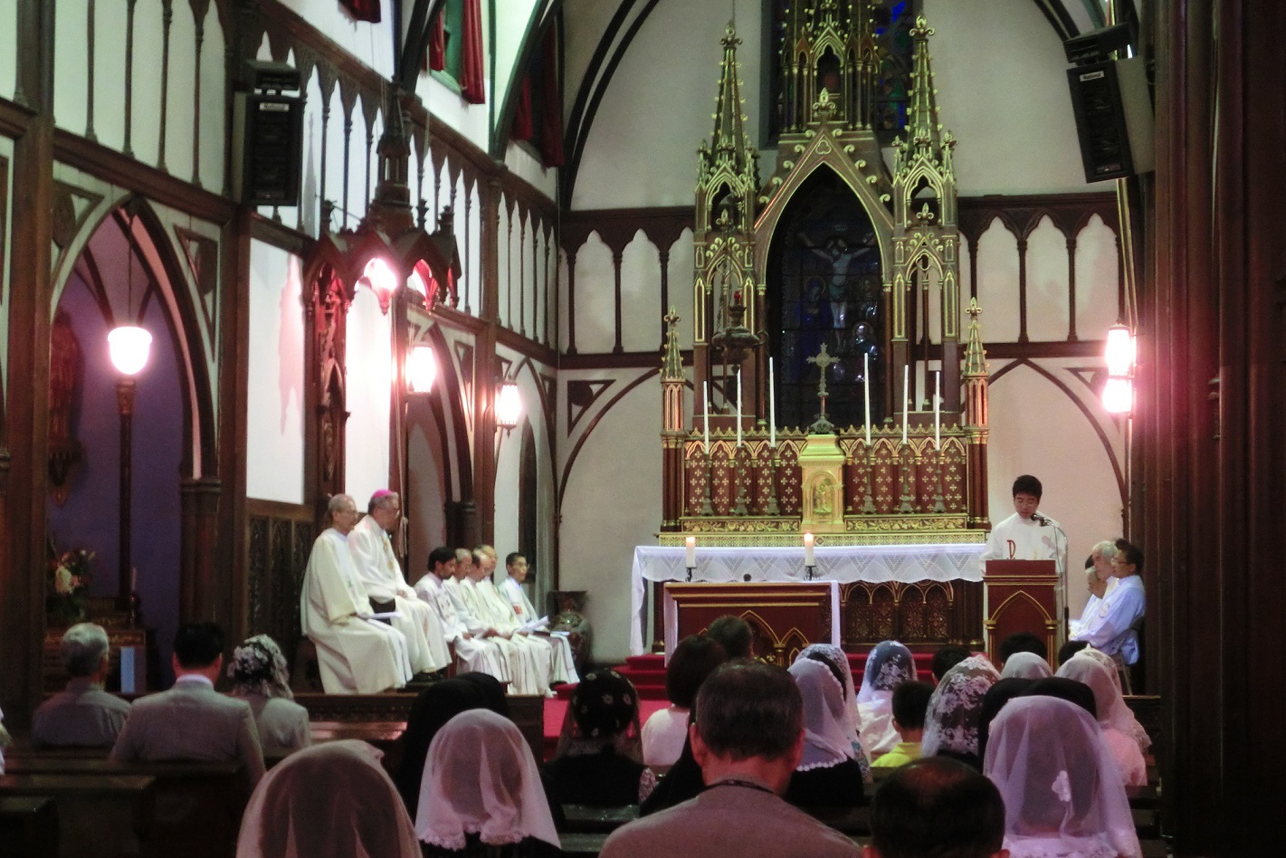5月29日(金)19時から大浦天主堂において、髙見三明大司教主司式、13人の司祭団の共同司式のもと召命祈願ミサが行われた。