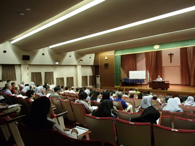 6月11日 公開聖書講座 Blog 2015.06.152015.06.16 6月11日、長崎教区生涯養成委員会主催による公開聖書講座がカトリックセンターホールで行われた。 講師を務めた髙見三明大司教は、「最初の罪とは何か ―創世記2章・3章を読む―」をテーマに1時間半にわたって語り、雨天で足もとのわるいなか集まった約130人の聴講者は熱心に聴き入っていた。 公開聖書講座は年2回あり、次回は9月27日(日)に澤田豊成師(聖パウロ修道会)を講師に迎え、開催される予定。