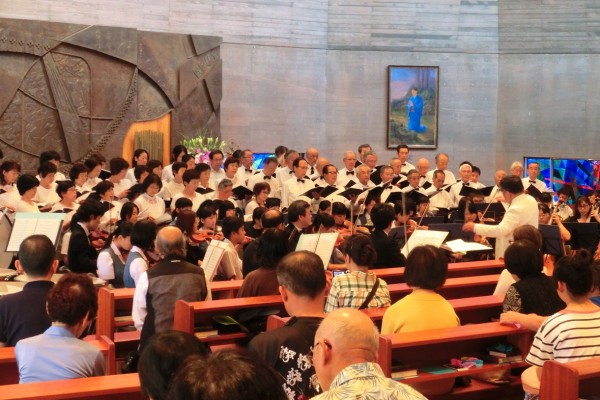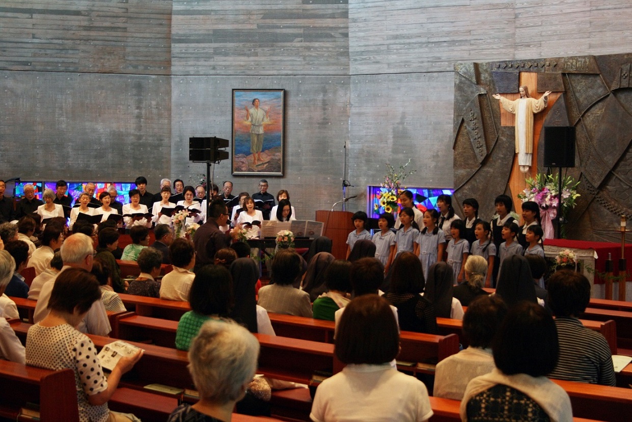 出演は、東京と長崎の「水の会」、子ども朗読グループ「空」、立教大学グリークラブOB・OG混声合唱団トリニティコール、聖マリア学院音楽クラブSCORE&OGら総勢約70人。平和への祈りを込め、『昭和の遺書』や今井登茂子作『赤とんぼ』の朗読、『大地讃頌』の合唱などが披露され、皆静かに聴き入っていた。音楽朗読会は、翌8月2日にも国立長崎原爆死没者追悼平和祈念館で開催された。