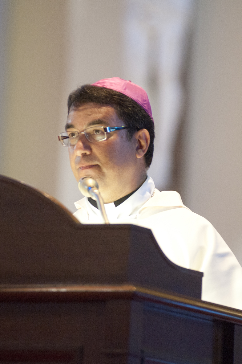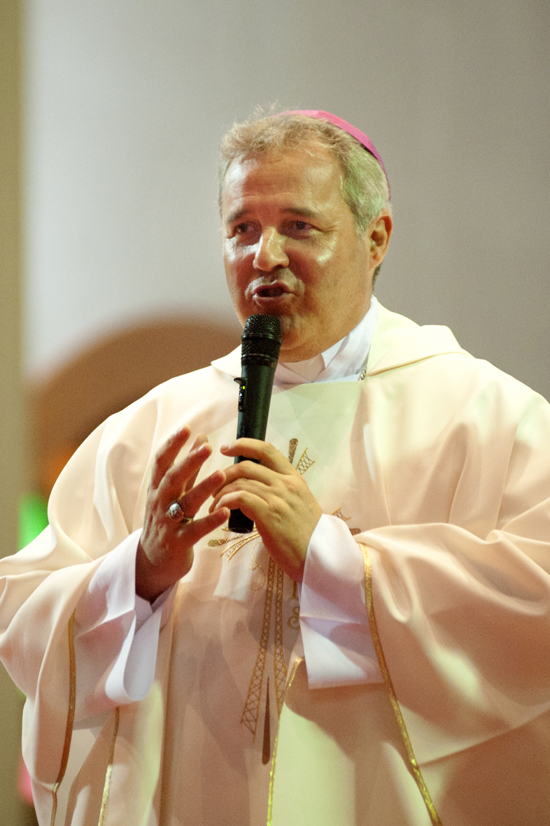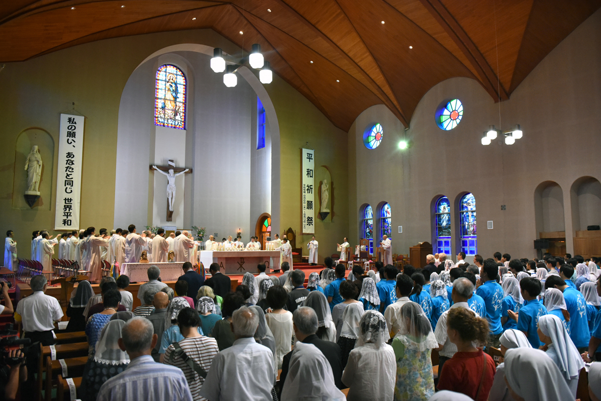 ミサの前には、「浦上教会の被爆マリア像」とスペイン・ビルバオ教区から寄贈された「ゲルニカの被爆マリア像」(レプリカ)の2体と、各小教区で平和を祈りながら折られた折り鶴が奉納された。「ゲルニカの被爆マリア像」は、1930年代に無差別爆撃で破壊され頭部のみが残ったもの。ミサには約1200人が参加し、祈りをささげた。ミサの説教師は、米国カトリック司教協議会国際正義と平和委員会委員長のオスカー・カントゥ司教(ラスクルーセス教区)が務めた。(ミサの説教 日本語訳 ・ 英語)