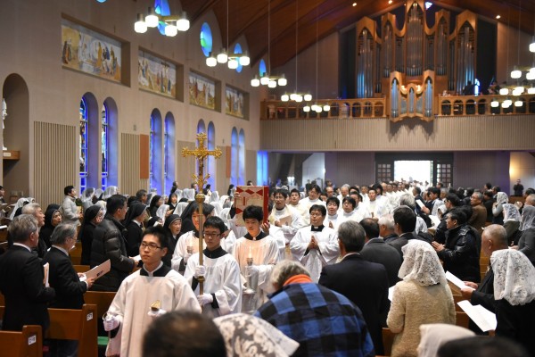 12月13日(日)15時から、いつくしみの特別聖年開年ミサが浦上司教座聖堂(カテドラル)で行われ、約500人が参加する中、髙見三明大司教により「いつくしみの扉」が開かれた。