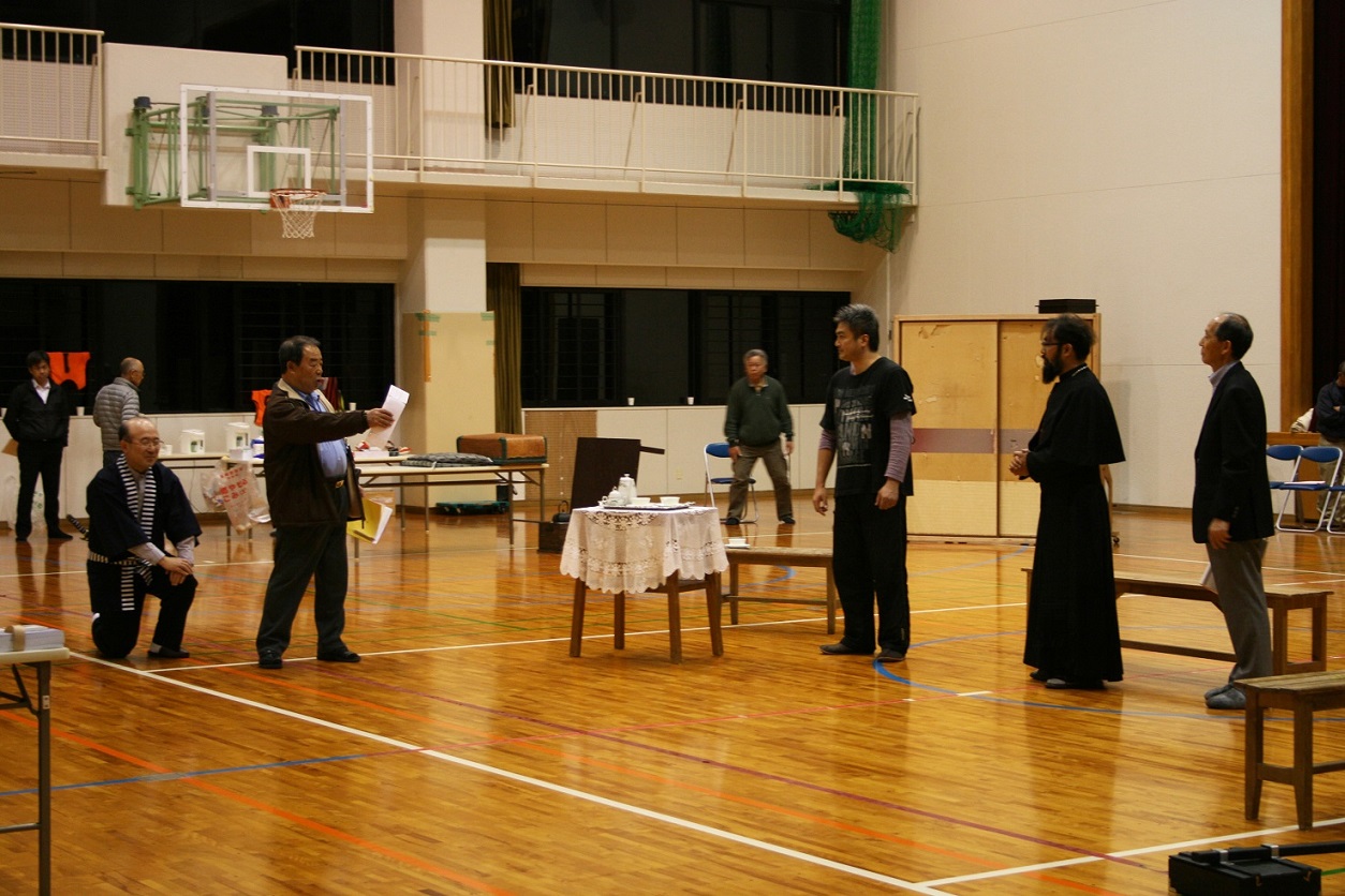 長崎中地区を中心に信徒・司祭らが出演するこの記念劇は、昨年3月長崎での初演(3月10、11日チトセピアホール)に始まり、佐世保(8月15日アルカスSASEBO)、上五島(今年2月20、21日上五島石油備蓄会館)で上演され、多くの信者らが観劇し感動を共有した。現在、ブリックホール公演に向けて裏方スタッフを含む総勢約70人の劇団員皆が最後の練習に励んでいる。