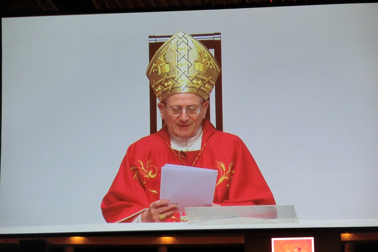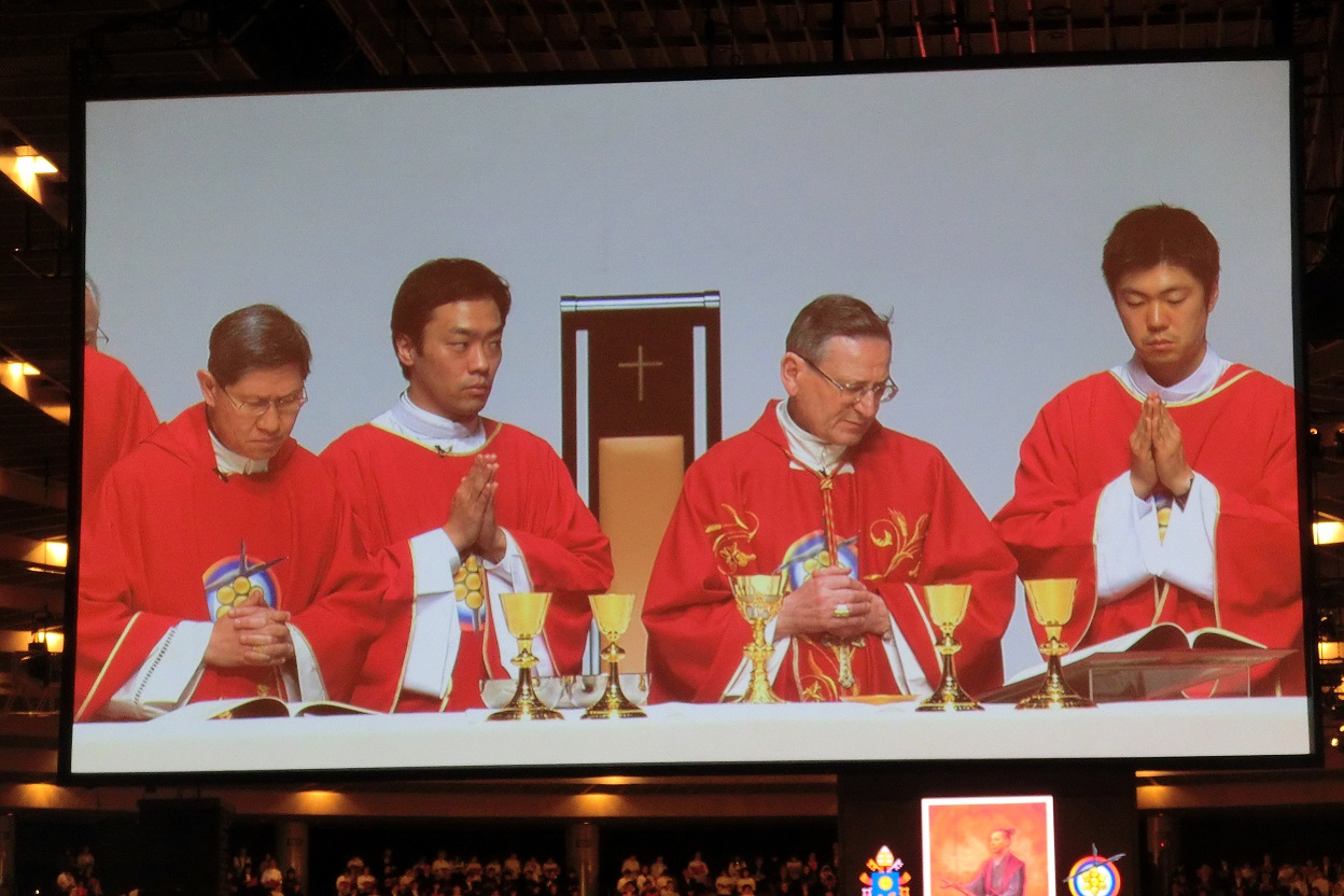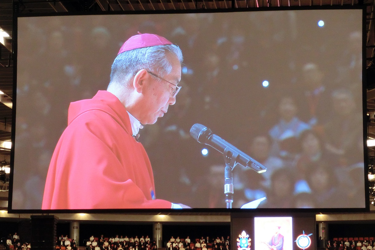 昨年1月21日に教皇フランシスコが殉教者として列福を承認したユスト高山右近の列福式が2月7日(火)正午、信者ら約1万人の参加のもと、大阪城ホール(大阪市)で開催された。列福式は、教皇代理アンジェロ・アマート枢機卿(教皇庁列聖省長官)の司式によって行われた。国内外各地から、長崎からも多くの司祭、修道者、信徒らが参加し、高山右近列福の喜びを分かち合った。
