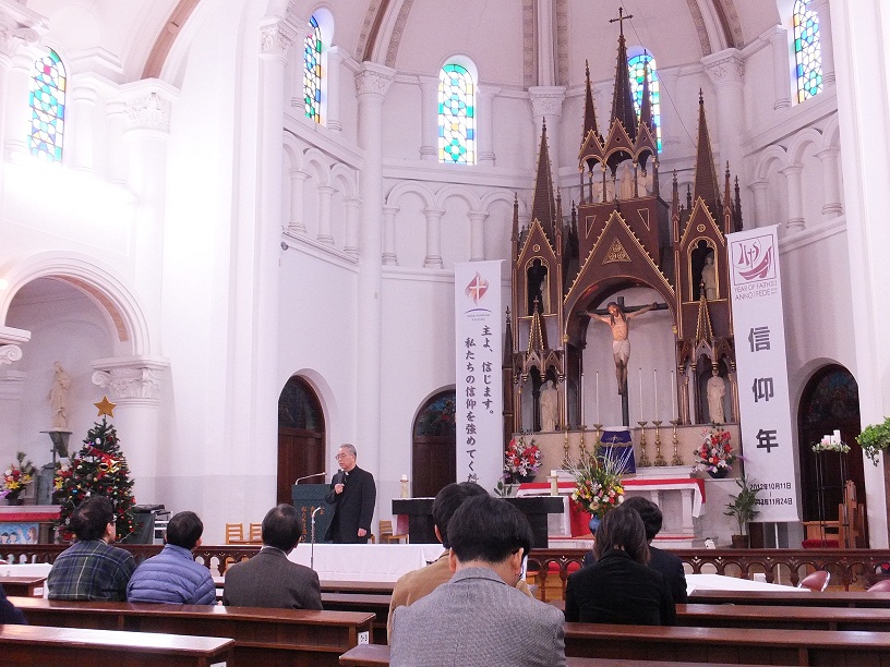 信仰年開始ミサ(2012年10月14日) Blog 2012.10.15 10月14日(日)午後2時から、髙見三明大司教司式により浦上教会で信仰年開始ミサが行われた(写真)。 この日は、佐世保(相浦教会)、平戸(平戸ザビエル記念教会)、上五島(青方教会)、下五島(福江教会)の各地区でも同じ典礼でミサがささげられた。