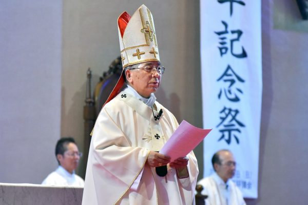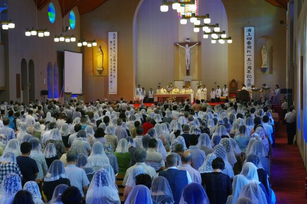 14時からのミサは髙見三明大司教の主司式により行われた。横浜教区から梅村昌弘司教らも参加し、約30人の司祭団を合わせ、計1,000人余の信者らが共に祈りをささげた。