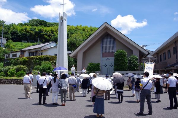 13時からは4つの秘密教会を辿る行列があり、二つに分かれて(本原方面と大橋方面)ロザリオの祈りを唱えながら浦上教会へと向かった。到着後は聖堂内で、映像を交えながら浦上四番崩れに関する説明を聞き、その歴史を振り返った。