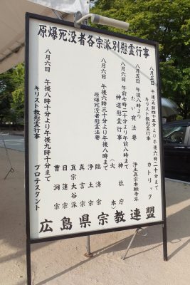 長崎教区平和推進委員会主催の広島ピース・スタディーが8月5日(土)~6日(日)に行われ、中高生12人と大人9人の総勢21人が広島を訪問、平和を願い祈った。