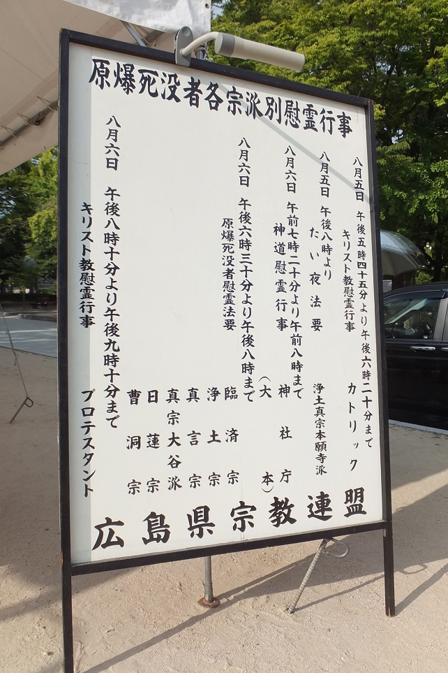 5日は平和記念資料館見学と、カトリックと聖公会との合同プログラムへの参加。平和行進をし、広島教区カテドラル幟町教会での平和祈願ミサで、各地から集まった多くの方々と一緒に祈りをささげた。翌6日の朝は、原爆と戦争のすべての犠牲者のためのミサに参加した。