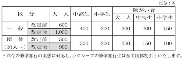 ▼2018年4月1日改定(大人のみ)の大浦天主堂拝観料