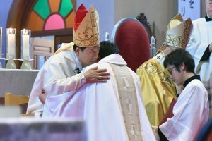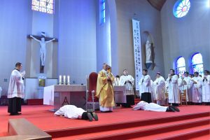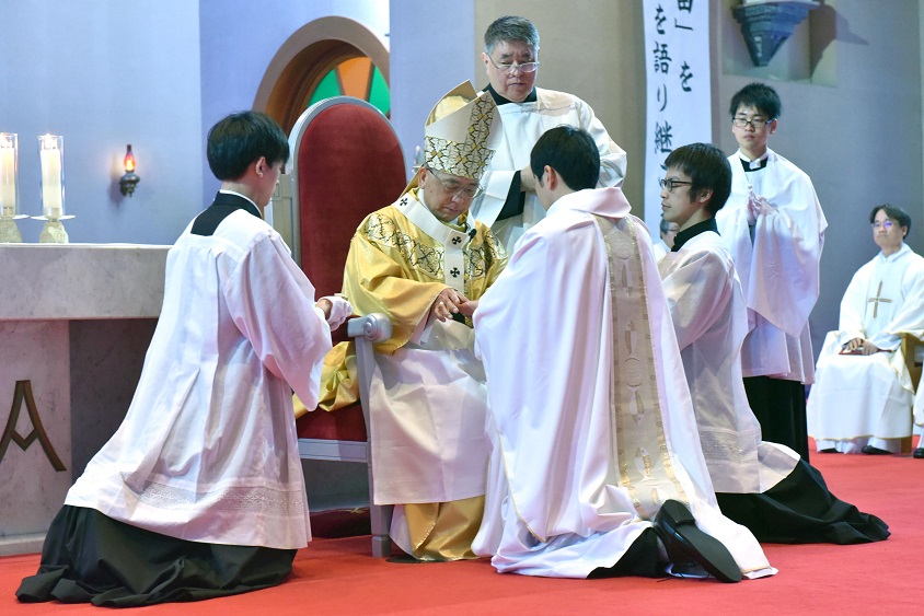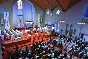 3月21日(水)10時30分から浦上教会で、髙見三明大司教主司式、90人以上の司祭団の共同司式、多くの修道者・信徒らの参列のもと司祭・助祭叙階式が行われた。