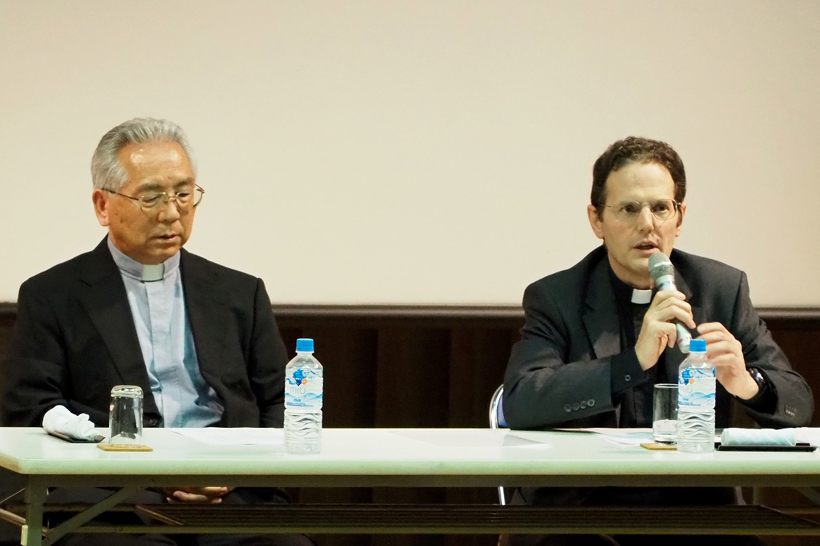 6月1日 教皇様についての講演会 Blog 2019.06.032019.06.04 6月1日(土)13時からカトリックセンターで「教皇様についての講演会」が行われ、約260人が集まった。 講演では、イエズス会日本管区長のデ・ルカ・レンゾ師が教皇フランシスコの人柄や人々に向かう姿勢について、かつて教皇がイエズス会の養成担当者だった当時の話しなどを交えて語った。 また髙見三明大司教は、日本カトリック司教協議会の教皇訪日招待の経緯や、教皇訪日の目的と意義に触れ、最後に教皇訪日の実現のために祈るよう呼びかけた。 その後は質疑応答があり、教皇について知り学びを深めるよい機会となった。