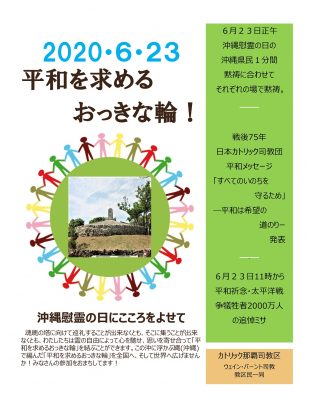 6月23日は沖縄慰霊の日です。カトリック那覇司教区のウェイン・バーント司教様からのメッセージと祈りへの招きをお伝えしたく、ホームページをご案内いたします。