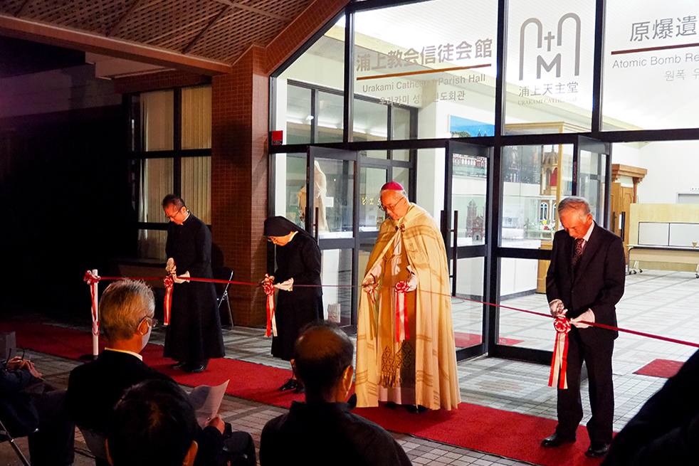 この日、司教座聖堂献堂記念ミサに先立ち18時からは、浦上教会信徒会館に新たにオープンした「原爆遺物展示室」の祝福式も行われた。