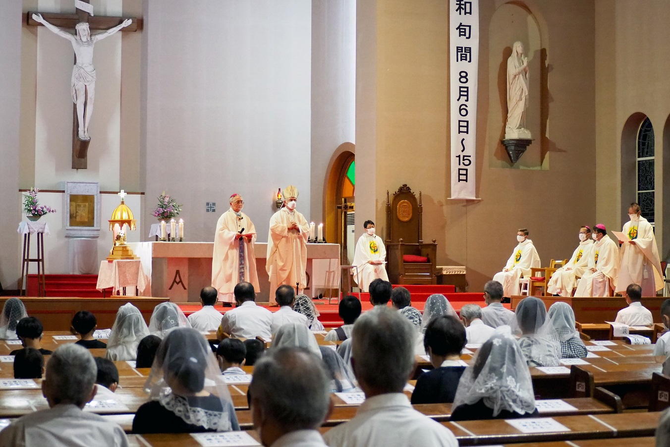昨年から続く新型コロナウイルスの影響により、長崎大司教区が主催する8月9日の平和祈願祭は昨年同様、今年も中止となったが、長崎中地区を中心とする各小教区ではそれぞれにミサや祈りがささげられた。